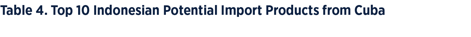 Table 3. Top 10 Potential Indonesian Export Products in the Cuban Market